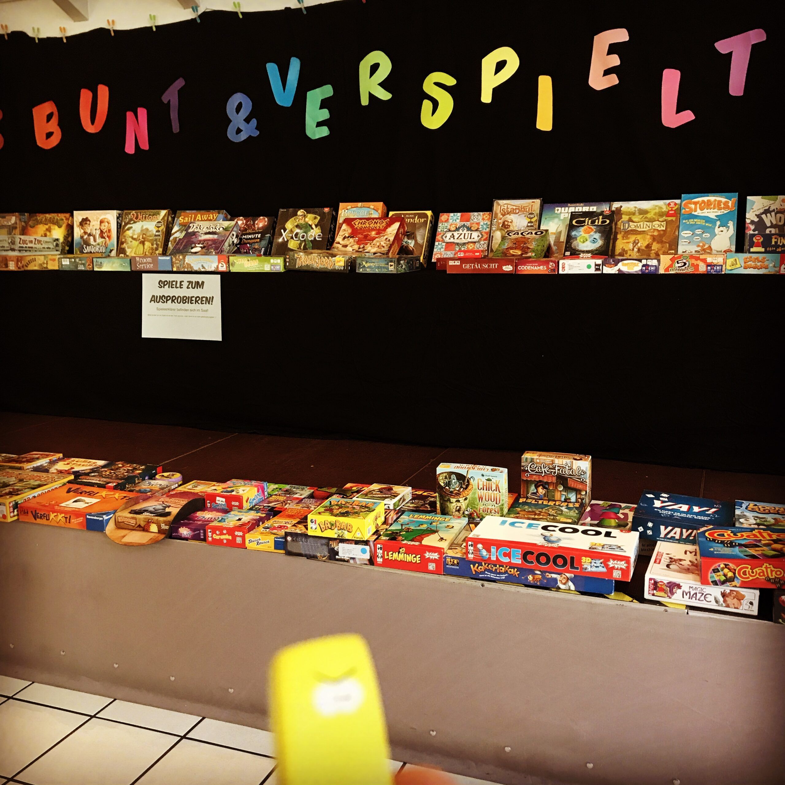 Weitere Spiele auf den Tischen waren : Villen des Wahsinns, Quacksalber von Quedlinburg, Voll Schaf, Sternfahrer von Catan, Dice Forge, Skyjo, Tribes, Unter Geiern, 7 Wonders.