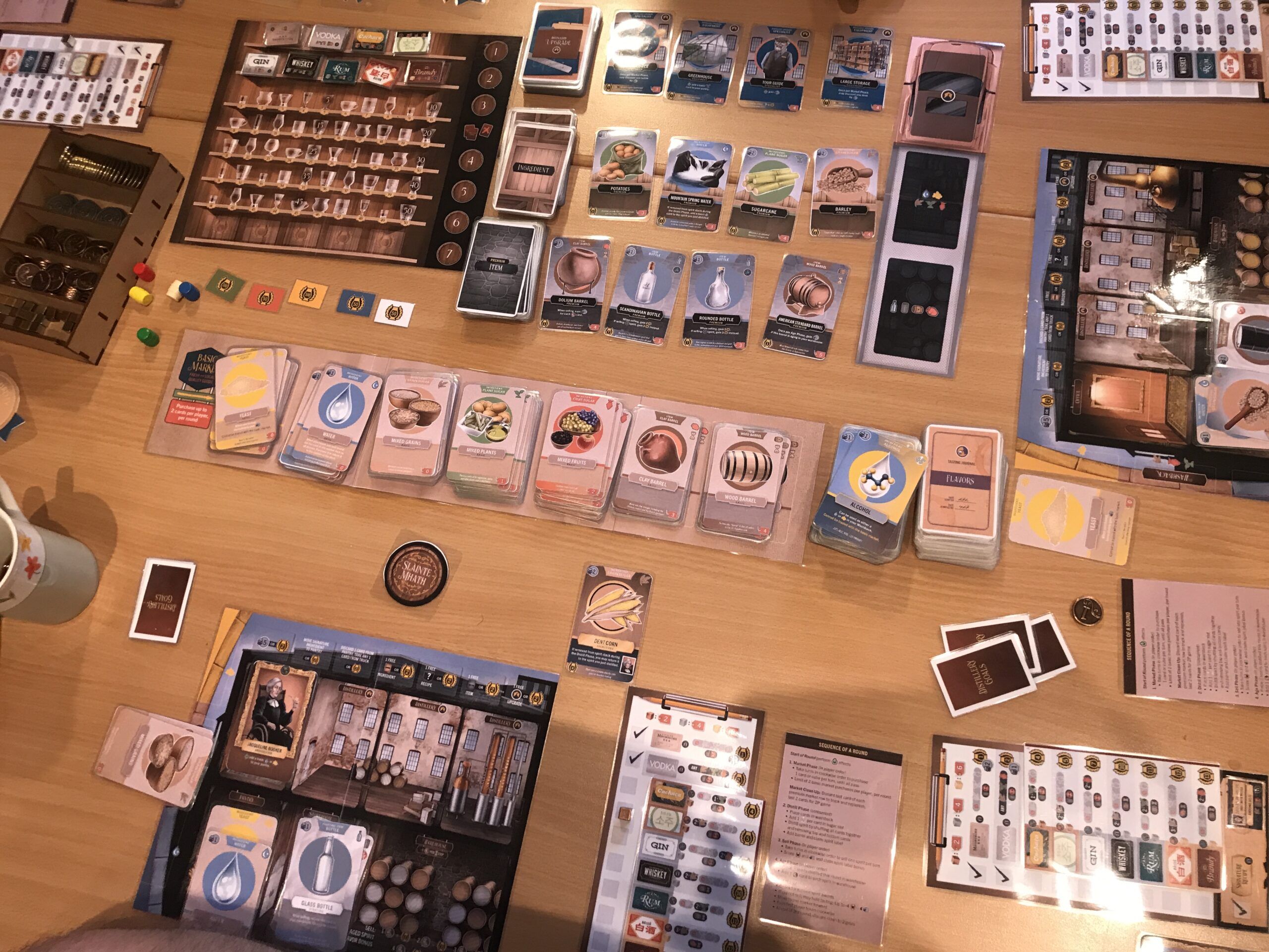 Voll. Ja, voll war es. Der Raum, der sonst schon bei 35 Menschen an seine Grenze stößt, wurde mit über 40 Menschen zu seinem „dicht-an-dicht“-Sitzen. Voll waren auch die Tische, denn allerhand Spiele wurden ausgepackt und gespielt. Menara, Aufbruch zum Roten Planeten, Destilled, Armageddon, Skyjo, Fyfe, First Rat, Space Base, Great Western Trail, Feed The Kraken, Renature, 9 Minute Kingdom und und und. Ihr lest schon, und könnt auch weiter unten ein paar Bilder sehen, es war voll auf Platz und Tisch.
