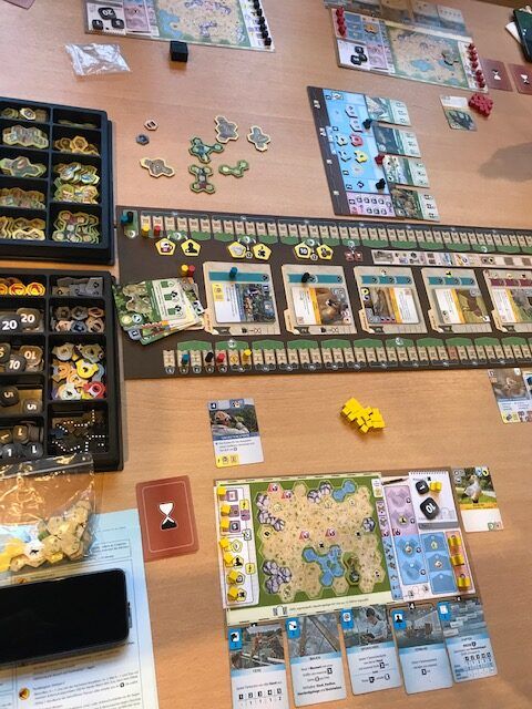 Was wurde alles gespielt? Zum Beispiel Arche Nova. Das ausladend Vielspielerspiel brachte gleich 4 Köpfe zum Rauchen – wer gestaltet den besten und lukrativsten Zoo?