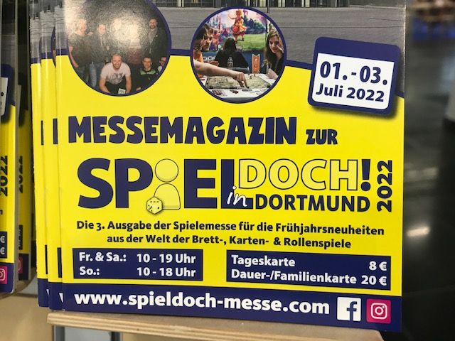 Am Wochenende vom 01.07. – 03.07.2022 hieß es SPIEL DOCH! in Dortmund. Die Verkaufsmesse SPIEL DOCH! vom Nostheide Verlag, bekannt durch die Spielbox und der Spielezeitschrift Spiel doch, ist normalerweise in Duisburg angesiedelt und zu Hause. Aufgrund der Raumnutzung durch Schutzsuchende aus der Ukraine konnten die Räumlichkeiten nicht genutzt werden, weshalb die Messe einen neuen Ort suchte. Dortmund hat den Zuschlag bekommen, und so konnte an dem ersten Wochenende im Juli in Dortmund gespielt, gekauft und sich spielerisch ausgetobt werden.